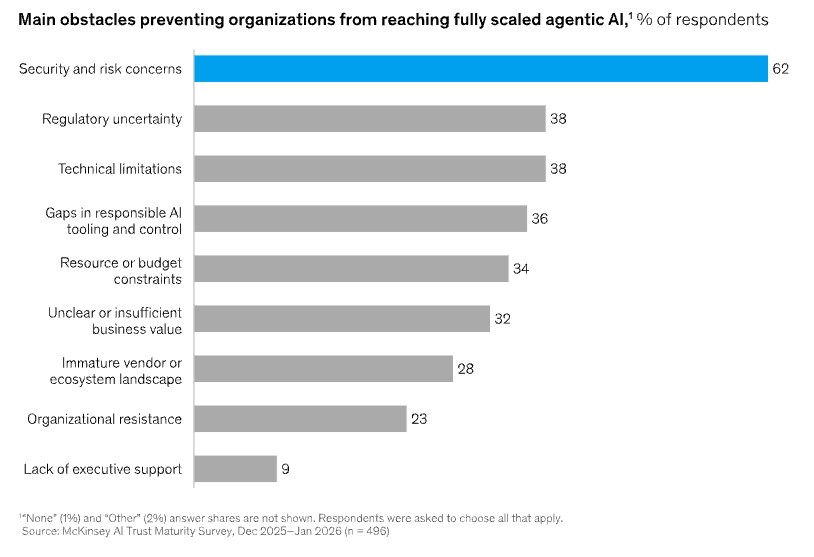 A recent McKinsey survey reveals nearly 66% of enterprise leaders cite security risks as the primary barrier to scaling agentic AI. While organizations rush to deploy autonomous systems, only 30% have mature governance in place. This gap leaves businesses vulnerable as AI shifts from answering prompts to autonomously executing core workflows.