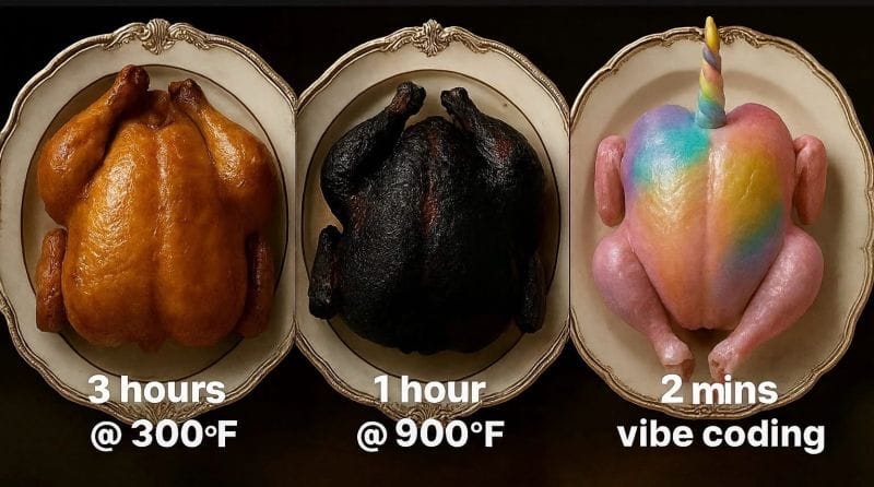 The promise of vibe coding is a unicorn in two minutes. The reality is a raw chicken.
